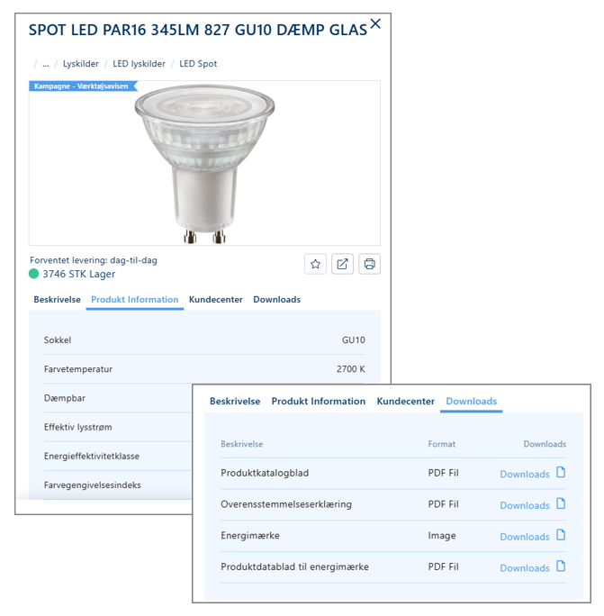 Access downloadable content like energy labels EPD and manufacturer documentation.
